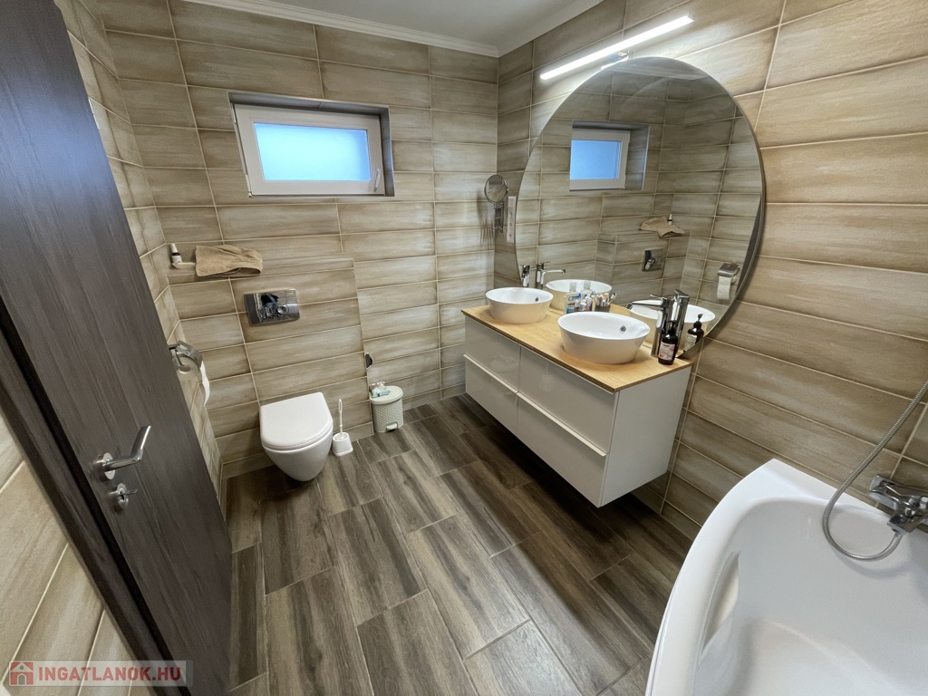 A fűtést gázcirkó biztosítja, alternatívaként vegyes tüzelésű kazán is rendelkezésre áll, a komfortot hűtő-fűtő klímák egészítik ki. Az épület 15 cm-es hőszigeteléssel rendelkezik. A kényelmet elektromos kert- és garázskapu növeli.