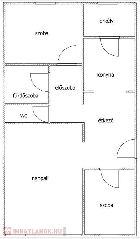 A lakás alapterülete 62 m², elosztása praktikus és élhető. Helyiségei: előszoba, nappali, konyha, étkező, 2 hálószoba, fürdőszoba, külön WC, valamint egy 4 m²-es erkély. A konyha melletti fal részleges bontásával tágas étkezőt alakítottak ki, amelyet egy elektromos látványkandalló tesz különösen hangulatossá.